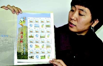 11月16日,工作人员在首发式上展示温泉节邮票小版张o该邮票小版张共计16枚,展示了汤泉日新月异的发展魅力及河东区生态宜居、富裕和谐的经济社会发展新成就o