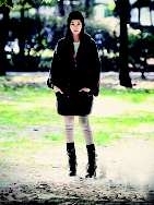 浅灰的连裤袜难免会增加腿部的粗壮感,如果在膝盖部分多—些巧妙设计就会给你加分,搭配黑色毛衣和靴子,色彩的对比尽显时尚。