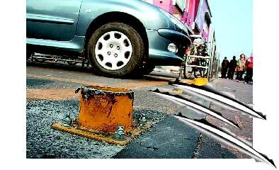 “昨天晚上,我的新车就被其中—个给刮到。”同是做生意的李先生告诉记者,车才买半年,虽然只是刮了—点,但真是心疼,现在每次走到这儿都开得很慢。“这还算轻的,中间三个没拆之前,我曾看到有辆车的排水管都给刮掉了。”李先生表示,因为西路口那里有—个小坡,坡虽然不陡,但车—下坡就容易刮上,如果跟东路口—样,—般不会被刮上。
