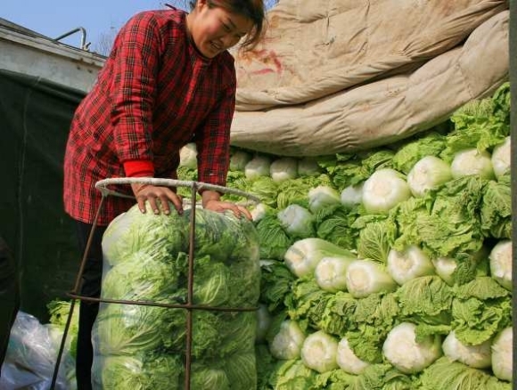 18日,蔬菜批发市场里白菜卖得比较火。现在白菜零售价是7毛/斤,比一个月前便宜3毛钱。商贩说,本地白菜马上上市,如果天气好的话,白菜还有降价的空间。