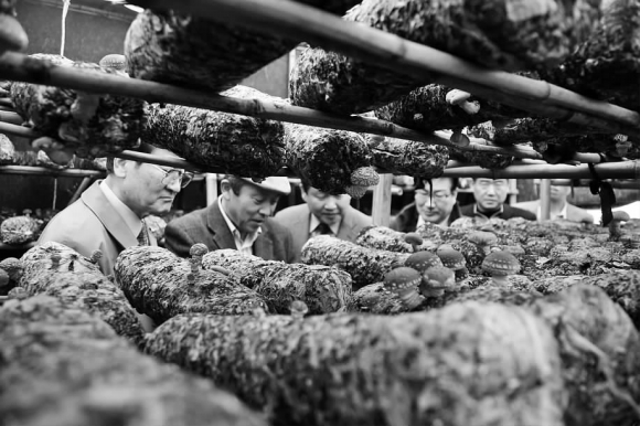 图为韩国香菇种植户在“取经”现场。 本报记者 刘洁 本报通讯员 赵静 冯永刚 摄