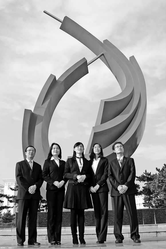 近日,2010年第七届中国模拟联合国大会在重庆举行,61所高校的233名“模联”代表展开博弈。山东大学威海分校首次派出由4名在校学生和一位指导老师(如图)组成的5人代表团参赛,最终赵天天和吴作栋两位同学获得“代表团最佳提名奖”。