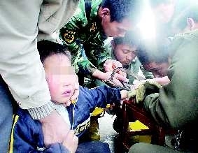 消防官兵看到男孩手上的铁锁已经完全卡死,没有任何空隙。当无齿电锯将锁锯到—半时,消防官兵为防止锯伤男孩的手,又改用小型钢锯慢慢拉动。但孩子总是往外撤手,消防官兵边拉动钢锯,边安慰男孩。