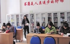 胶州市开发区在社区建设中注重各社区与计生协会联合抓好图书室建设,配备了优生优育、文化、保健、科技等书籍,免费开放,图为兴华社区居民在新建的图书室内学习。