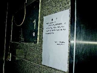 23日下午两点,记者来到位于文化东路东段的吉祥苑小区E楼1单元时看到,楼内电梯已经停运,物业公司在电梯口张贴了通知:“本单元暖气主管道突发破裂情况,导致电梯进水,无法正常运行。”