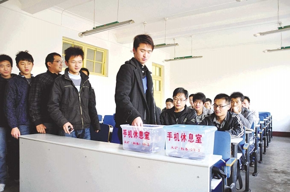 山科大资源与土木工程系党总支副书记殷永贵表示,这个“手机休息室”的方法是采矿专业辅导员尹发利两周前提出设立的,正在进行试点。
