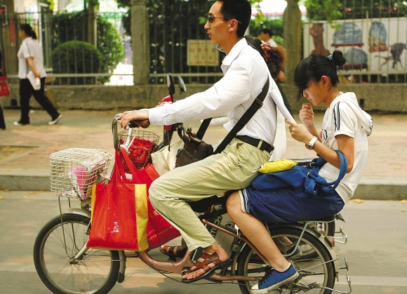 (豆豆 摄)时间:2010年6月地点:泰城青年路自述:偶遇一名赶考的学生,正在抓紧复习。点评:但愿骑车者结实的后背能给她力量。