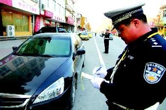 23日下午,临沂交警支队直属一大队民警对停在新华路西侧的车辆进行拍照罚款。从11月17日开始,新