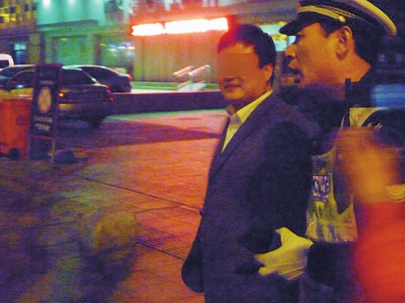 22日晚8点35分,在新威路与渔港路交叉口处,一辆黑色别克车被民警拦下检查,驾驶员白某下车后递上证件,虽然距离白某有段距离,但记者都闻到了白某身上的酒气。但白某坚持自己并没有喝酒。坐在车上的白某妻子替丈夫解释,“酒是我喝的,他晚上没喝。”
