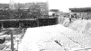 建楼打下的水泥基柱距离出土元青花的沉船船舱仅一两米。 本报记者乔显佳 摄