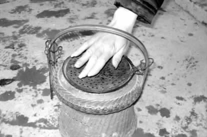 火烘子在鲁西南农村应用十分普遍,且简单可行。它是用一种叫柽柳的条子编做的,长约60厘米、宽约40厘米、高30厘米的拱形筐子,像篱笆样,都有茶杯口粗的洞,用它可以撑起被窝筒。柽柳又称红柳,是一种落叶乔木,老枝红色,花淡红色,性耐碱抗旱,家乡生长很普遍。烧火做饭、取暖都离不开它。晚上常用它烤火取暖。睡觉前母亲常用柽柳或豆棵、棉柴烧上一堆熊熊的火,再把火炭盛到火盆里,压紧,上面蒙上一层灰。然后将火盆子小心翼翼地放在火烘子里,火烘子撑起被窝,火盆子散热很快,这样,慢慢地就把被窝烘热了。母亲一遍又一遍地摸着被窝的温度,烤热了,母亲就取出火盆子、火烘子,我们趁热乎钻进被窝里,就这样度过一个又一个美好的夜晚。家里的大床,一般先热一头,等大孩子钻进被窝后再将火烘子、火盆挪到另一头,可以烘脚。但睡时千万不能将火烘子蹬倒了,否则就容易着火。大人对此十分小心,一会儿摸摸被窝,等温度适宜了,才让孩子钻被窝,保险系数很高。有时火大了,不小心,要烫糊褥子,这种情况一般很少发生,通常在火盆底下垫上一层东西。一个冬天,也有疏忽的家庭,不听话的孩子烧了被子的事也是有的。