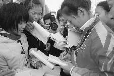 24日上午,日照市政府为王宁举行庆功会,市长赵效为将10万元的“大红包”奖给了这个为家乡带来荣誉的23岁姑娘。