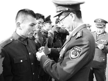 24日上午,在日照边防检查站驻地,平时庄严的办公大楼前弥漫着离别的气氛,在告别警徽仪式上,复退老兵正式卸下自己的肩章和领花,结束了他们人生中难忘的警营生活。