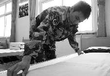 苏腾飞退伍前最后整理内务。