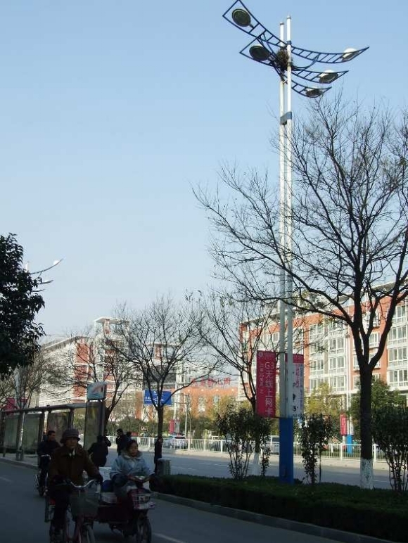 记者发现,不仅在东昌路上,利民西路上有两个带有鸟巢的路灯,聊城大学田径场周围也有一个这样的路灯。这些鸟巢都安在路灯的顶端,而路灯也比周围的树高出几米或十几米。
