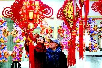 11月24日,在临沂小商品批发市场,两名外地客商正在挑选年货挂件。随着新年脚步临近,许多外地的客商来到商城临沂,为即将到来的销售旺季备货。