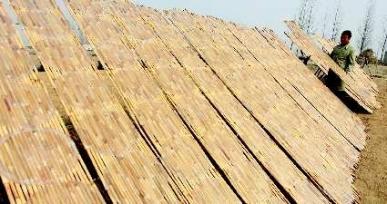 24日,记者在蒙阴县联城镇桃花峪村看到,排排箔上晾晒着一张张亮晶晶的粉皮。据了解,联城镇桃花峪村有90%的户都在加工粉皮,村民们农闲大干,农忙小干,一年四季都有钱挣。仅此一项,全村人均增收千余元。