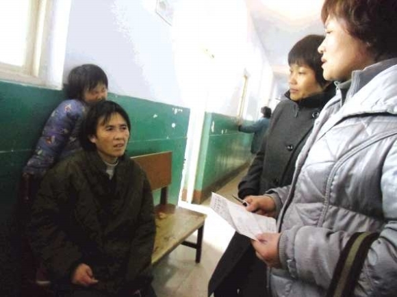 11月24日,记者在泰安市第二人民医院精神病病房区的走廊上见到了一名脸颊消瘦的女子,背着一个4岁左右的小女孩晃来晃去,嘴里还念叨着什么。病房医护工作人员称,该妇女是10日晚上被送来的。