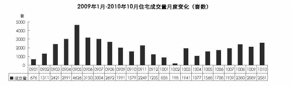 与10月份供应大幅度增加相对应的,随着市场的突变,10月份住宅成交2581套,一共30.2万平方米,同比去年增长63.5%和83%。环比9月份,成交套数增长了23.6%,成交面积增长了26.9%。