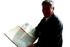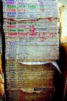 张秋生老人将收藏的晚报都排序装帧,15年来,他收藏的晚报摞起来有4米高。本报记者黄体军摄