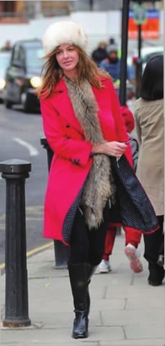 特蕾妮·伍戴尔难得亮色外套出镜,让人眼前一亮,皮草雷锋帽配大围巾保暖有度。