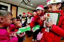 11月27日上午,山师附小四年级11班雏鹰小队的小朋友们,用平时积攒的零花钱购买了学习用品、玩具、食品、圣诞帽等来到福利院,和福利院的小朋友们一起做游戏、画画,度过了一个有意义的周末。 杨萌 摄