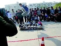 28日上午,德州学院操场上,来自德州学院、华宇学院、德州职业技术学院、衡水学院的轮滑队员们,用自己纯熟的技术、多变的步伐为大家呈现了一场绝美的轮滑比赛。 本报记者 高倩倩 摄