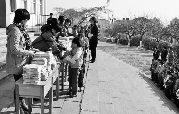 日前,威海市翠竹小学开展了“中华一家亲”向西藏小朋友爱心捐书活动。孩子们将自己喜欢的图书共计1500多本,捐赠给了西藏帐篷学校的孩子,共同分享读书的快乐。据了解,近日,翠竹小学将把这些爱心图书邮寄给西藏帐篷学校。图为捐书现场。 本报记者 刘洁 通讯员 姚芳 摄