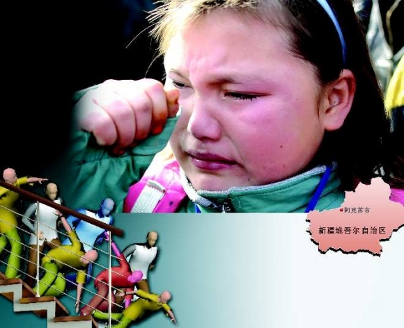 事故现场:新疆一小学学生蜂拥下楼酿惨剧