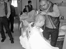 右图:29日,小勇剃光头发为接下来的开颅手术做准备。李格格 姜黎明 摄影