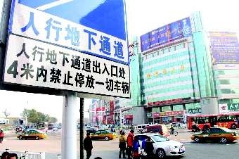 29日,在胜利街与和平路交叉路口处,不少行人冒险在车流中穿行,对附近的人行地下通道却视而不见。据了解,设置地下过街通道目的就是为了确保行人安全,但仍有很大一部分行人却因“怕麻烦”,不顾安全与车抢道。