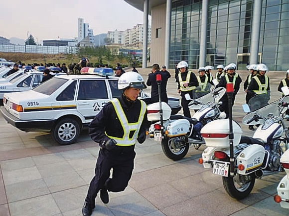 11月29日中午12点,巡警支队政委戚新杰向各大队下达应急拉练集结命令后,巡警支队一、二、三大队和特警一大队110名民警及协勤迅速从各大队驻地出动,配备了单警装备、防刺服、防爆盾牌等处置突发性事件的警用装备,出动28辆警车奔赴威海市国际会议中心集结。其中巡警一大队在12点01分在操场上集合待命,大队长简单交代任务后,民警迅速出发,在12点15分时到达集结地点,用时14分钟。12点20分,距离集结地点最远的巡警二大队民警也赶到了国际会议中心,各大队完成了在20分钟内集结完毕的原定任务内容。