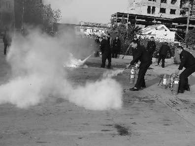 29日,济宁汽车北站组织全站职工进行了安全教育培训,并对车站及营运车辆展开安全生产事故隐患拉网式排查。图为车站员工在学灭火。