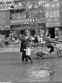 29日记者在现场看到,泥水顺着井盖中间的缝隙不断往外涌,向东流了50多米,井盖周围没有任何防护措施。过往的行人纷纷绕行,本就不宽的街道显得更加狭窄。一辆过往的轿车经过时溅起了水花,路边人行道上的市民连忙躲闪,附近的一位居民竟然在“井喷处”涮起了拖布。