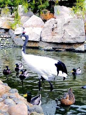 内容简介:百鸟园内,一只鹤站在鸭群中悠闲自得,大家和谐共处,各得其乐。
