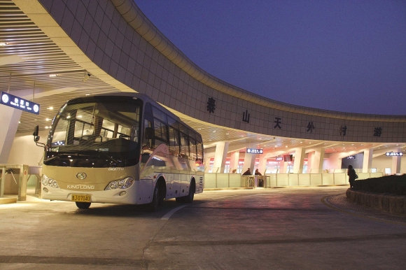 29日,崭新的泰山天外村游人中心在夜色下熠熠生辉,新建成的游人中心将于30日正式启用。据了解,天外村广场综合改造项目增建了候车廊、公厕、信息展示平台等,对灯光、园林、管网进行了综合改造。