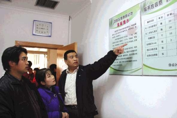 “旁边那个收费明细的牌子以前就有,只不过挂的位置不如现在醒目。这次我们配合提示牌挂在显眼的位置,来登记的新人一目了然,避免了一些商家钻空子。”婚姻登记处一名工作人员解释道。