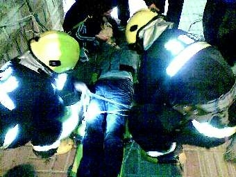“有人吗,帮帮忙!”11月30日凌晨4时许,市民江先生路过羊头峪西沟街南头时,突然听到泄洪沟传来呼救声,江先生探头一望,六七米深的沟底,一名男子躺在那里,一名女子蹲在旁边大声呼救。江先生连忙报警,济南公安消防十四中队的官兵悬担架将伤者慢慢拉了上来,并由120送往医院救治。尉伟 张梁 摄影报道