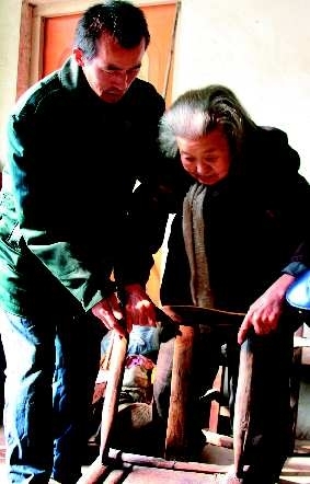 “占喜来啦,快坐下。”一位花白头发穿着破旧衣服的老人拄着拐杖蹒跚地从屋里走出来,握住高占喜的手。看到高占喜拿了鸡蛋和奶,老人“怪罪”地说:“你怎么又拿东西,上次拿的奶还没喝完呢。”