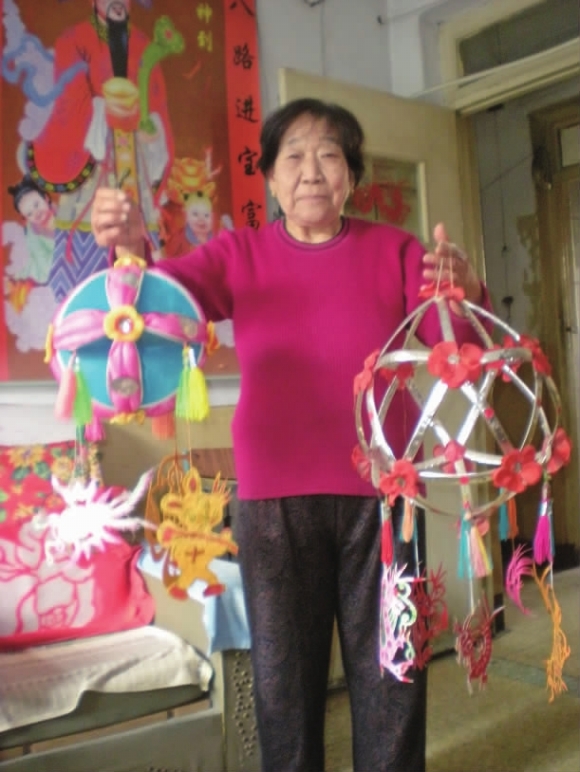 11月30日上午,在“绣球老人”王德淑家里,五颜六色的绣球挂满了卧室,一个个绣球式样各异,十分精美,绣球底下还挂着活灵活现的十二生肖剪纸。而记者走近一看却发现,这些绣球却都是用废旧用品制作出来的。王德淑告诉记者,绣球的布料都是剩布头拼接缝制的,里面填充的是塑料、泡沫等,而绣球底下的剪纸用的则是旧挂历。