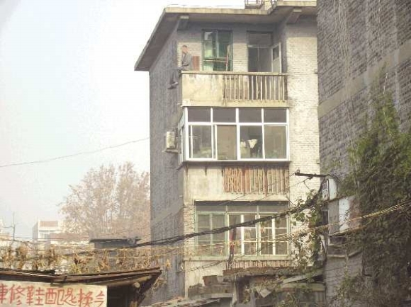 30日上午11时20分左右,记者赶到泰山大街中段附近一栋住宅楼前看到,一名身穿灰色上衣的男子坐在三楼阳台的栏杆上,楼前聚集了不少群众。民警正在劝着这名男子,还有一名青年女子也在不时地向这名男子喊话。