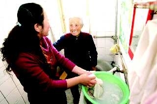 29日,在90岁的孤寡老人吕淑珍家里,芝罘区胜利社区居委会的工作人员正在帮助老人洗衣服,做午饭,切实帮助孤寡老人解决生活中的实际困难,让孤寡老人在浓浓关爱中感受到社区大家庭的温暖。