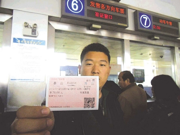 最终,小薛在上午10点20分改签到2日下午发往青岛的火车票。