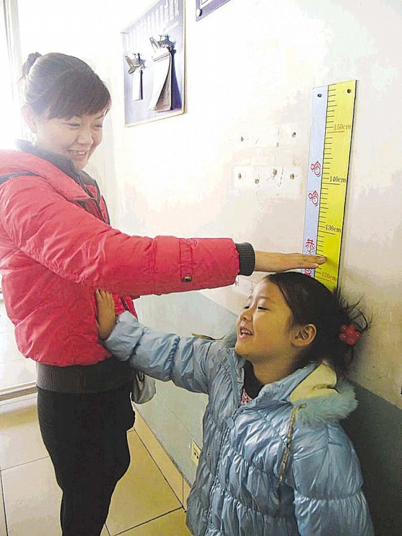 “这次出来得比较着急,家里没人照看她,所以我就把她带出来了。”廖女士摸着女儿张瑞阳的头说。由于平时很少带女儿坐火车出门,所以廖女士很少注意儿童免票的身高规定由1.1米提高到了1.2米。在火车站工作人员的提示下,她带着女儿到售票大厅东南角的测量处一量,发现女儿已经超过新规定的1.2米的免票范围,长到了1.22米。