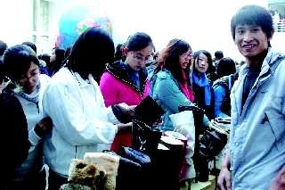 1日,在烟台职业学院图书馆,由该校建筑工程系发起,全校师生参加的一场“旧物展销”大型商业体验活动如火如荼地进行着。此次“旧物展销”涉及范围有衣帽类、食品类、书籍类等。据悉,此次展销会营业额的5%将用于慈善事业,主要捐助对象是敬老院和孤儿院。本报记者 赵金阳通讯员 潘兵 摄