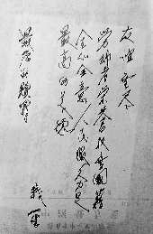 桌子上压着山崎宏写的纸条:“友谊无尽,劳动者荣誉权无国籍。全心全意(为)人民服务是最高的美德,我一生最后的赎罪。” 本报记者 王媛 摄