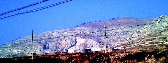 11月29日上午,记者来到陈沟湾村,这是一座坐落在山坳里的村庄,在村东头1公里左右的地方,有一座低矮的石头山,面朝路的一边山体已被削开,深深地凹了进去,远远可见一条长长的运输带和大型碎石机。据村民介绍,这是一座石料厂,前不久还在生产着。村西边另一座山也被削开了,村民称这里有三座石料厂。记者看到其中一座石料厂正在生产,传输带把碎石头运到等候的大卡车上,不仅噪音大,而且还有很多粉尘飞舞。