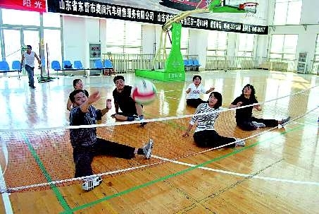 今年42岁的侯国新因为患小儿麻痹症,右腿肌肉严重萎缩,只能借助双拐行走。他作为坐式排球的队长,和队员一起努力训练。他憨厚地笑着说:“教练说训练期间不能抽烟,我就戒了。”侯国新说,残疾人本来就是一个特殊的群体,大家为了同一个梦想走到一起,能参加比赛所有人都感到非常自豪。