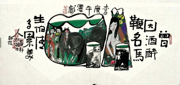 我生于北方大地,性属放旷一路,其修书法,直取大篆,如散石盘,毛公鼎;汉隶取法石门颂,礼器,好大王;魏晋则喜石门铭,张黑女墓诸碑,唐人则喜颜鲁公;算是碑学一路,取其朴茂大气,浑漭雄肆,与画乃然。即令所做水墨小品,亦求其沉郁。此时所做人物,内容多以古人为题,亦做仕女,只取其意,未见娇媚。
