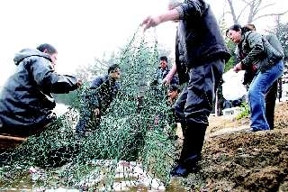 12月2日,在南山公园人工湖,市民争相前来购买刚捕捞上岸的鲜鱼,一名前来买鱼的市民告诉记者,这里的鱼是眼看着捞上岸的,买的放心,而且价格还比市场上便宜1块钱。